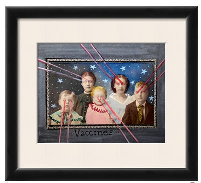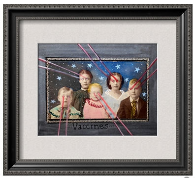 I am in no way, shape or form against vaccines. I like science and what it does for humans, including vaccinations. This was just done during some feverish piece I read where lasers will shoot out of your kid’s head or something if you vaccinate them. The baby in the middle was always my fave.